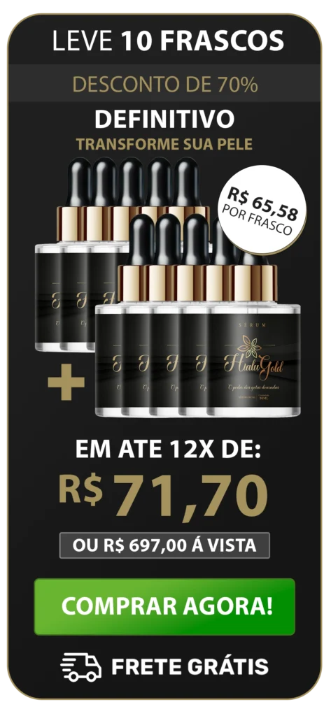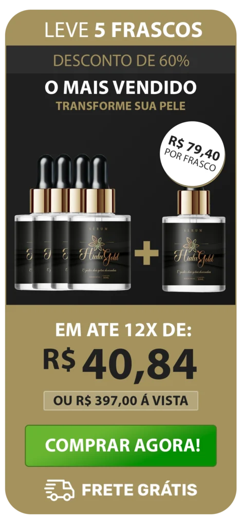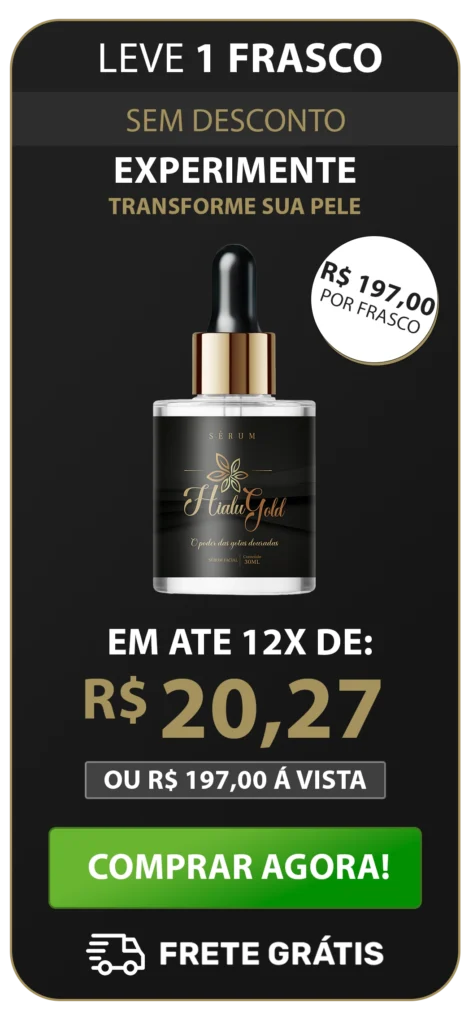 “Hialugold transformou completamente a aparência da minha pele. Em apenas 4 semanas, notei uma redução significativa nas linhas de expressão e um clareamento das manchas que me incomodavam. A hidratação é incrível, e o contorno do meu rosto nunca esteve tão definido. Estou encantada com os resultados!”